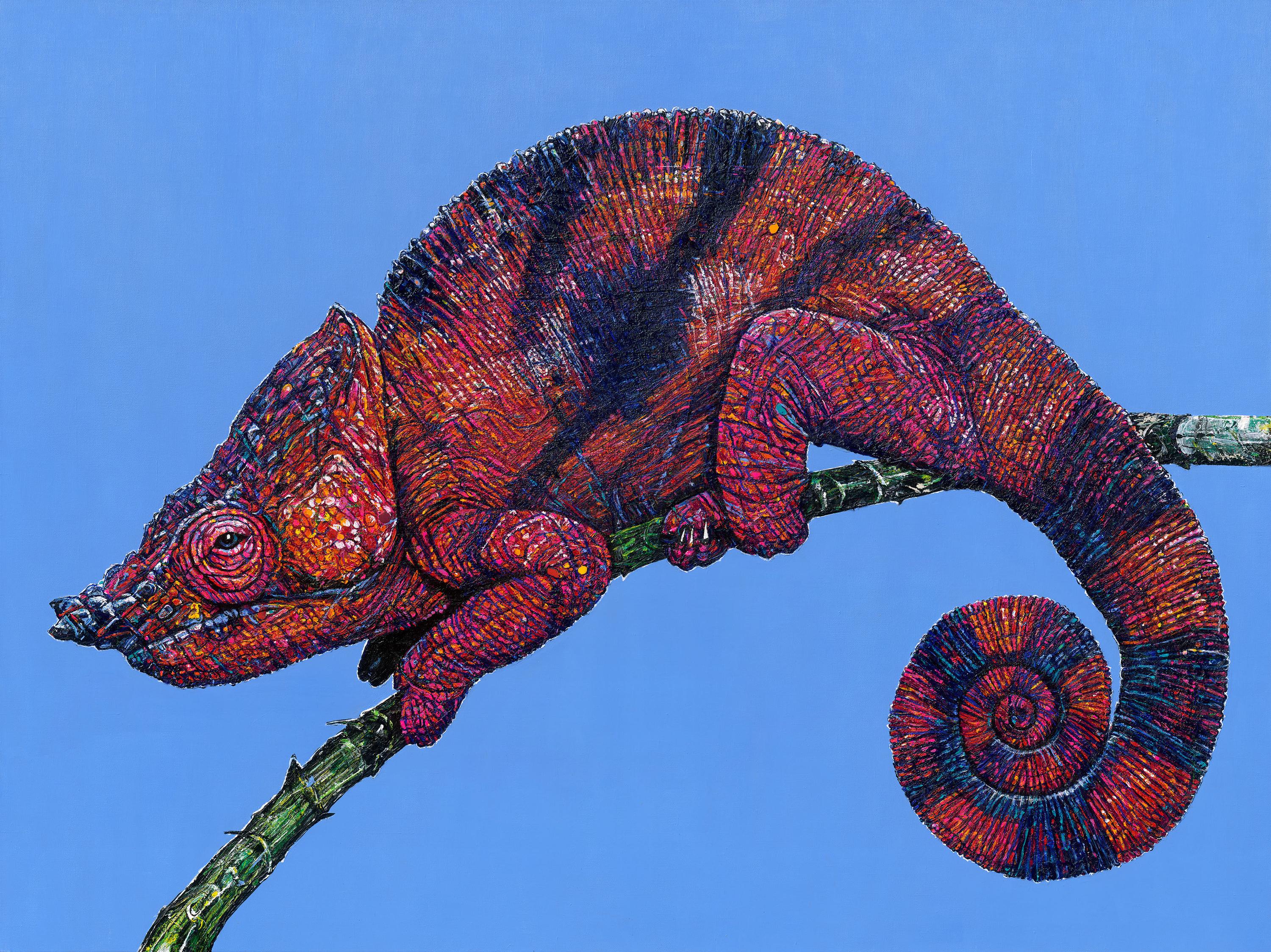 Change Your Colour (Chamäleon vor blauem Hintergrund) - Sarah Linke